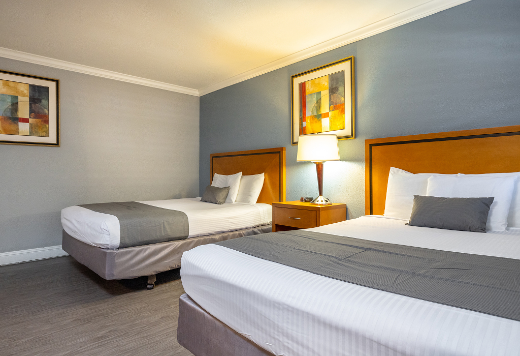 The spacious and comfortable guest rooms at our Downtown San Francisco hotel have all the conveniences that make you feel as if you are at home. From private bathrooms, flat screen televisions, refrigerators and microwaves, iron and ironing boards, hair dryers, and Wi-Fi. All of our guestrooms are ADA Defined service-animal friendly. Our remodeled rooms are well-equipped to make sure your stay with us is enjoyable.